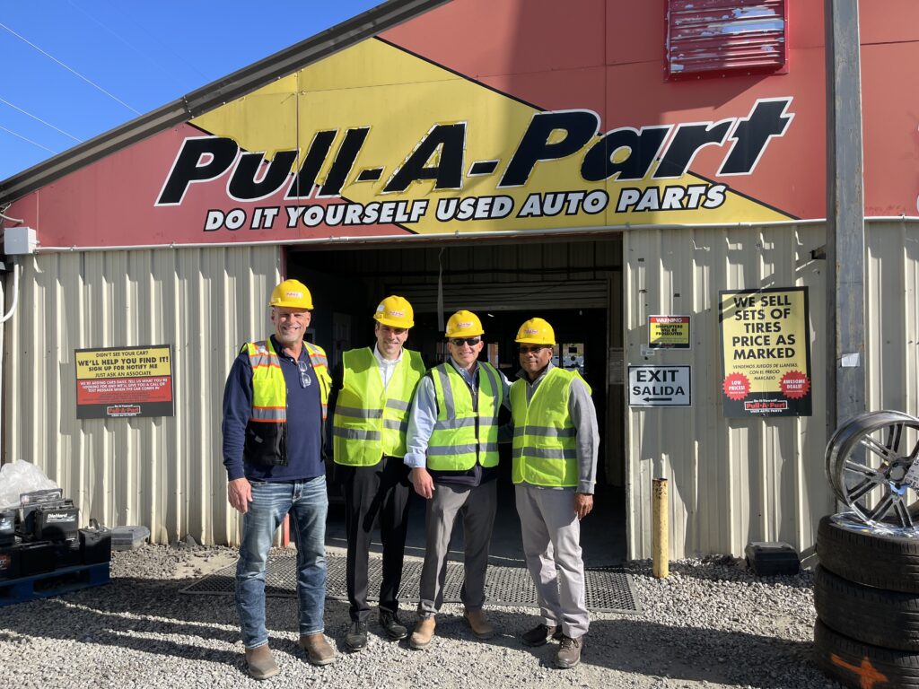 On Monday, November 17, Pull-A-Part hosted Georgia House Majority Leader Chuck Efstration and Chairman of the Georgia House Committee on Urban Affairs, Representative Brian Prince, at their Atlanta North facility in Norcross, Georgia, to help celebrate America Recycles Day. The visit to Pull-A-Part focused on the highly significant role automotive and metal recyclers play in both environmental stewardship and healthy supply chains. The tour at Pull-A-Part was followed by a tour at SA Recycling, where legislators saw the next step in turning a car back into a commodity.