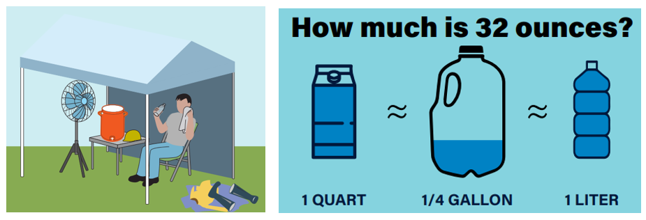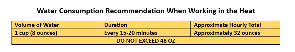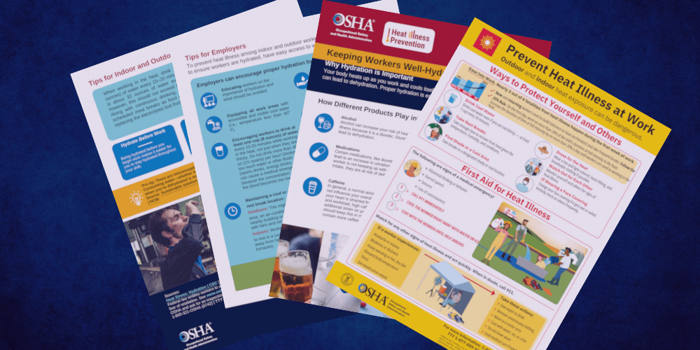 Hydration is an important part of preventing heat illness. Keeping hydrated helps regulate body temperature which helps combat heat injury. OSHA has a valuable resource with information on how liquids you consume (such as alcohol or caffeine) and medications can play a role in hydration.