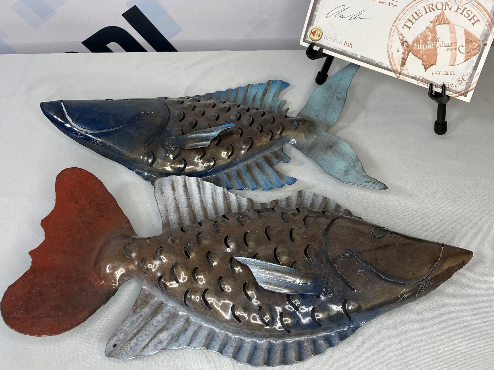 - Two handcrafted “Iron Fish” sculptures by self-taught coastal sculptor Chase Allen of Daufuskie Island, S.C. Allen and his works have appeared in publications including Coastal Living, Southern Living, and Charleston Home.